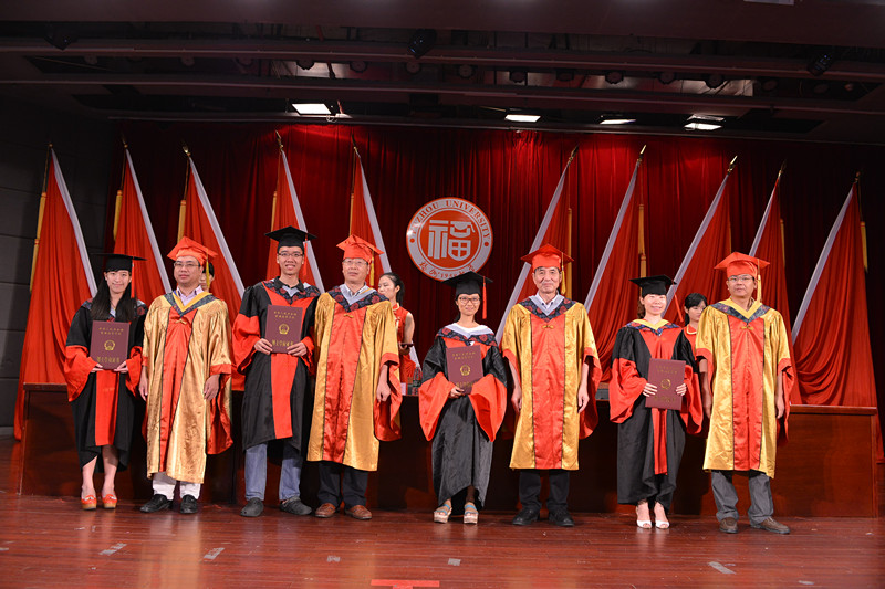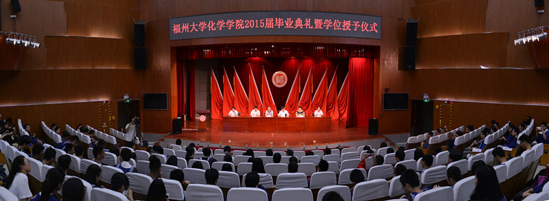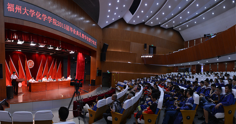 首先,黄剑东副院长宣读2015届 校级优秀毕业生名单,其中博士2名、硕士10名,本科生7名。2015届获得博士、硕士、学士学位毕业生名单,共有博士21名,硕士132名,本科生141名。并颁发校级优秀毕业生证书,对他们的顺利毕业表示祝贺。希望他们不忘母校,谨遵老师教诲,锐意进取,再创辉煌。接着,毕业生代表黄瑶发言,感谢四年来领导的关怀,老师的教导,同学的鼓励帮助。然后由在校生代表余丽莎发言,代表全院在校生对学长学姐们的照顾及引导表示感谢,对他们顺利毕业表示祝贺,为他们的未来送上祝福。接而教师代表薛金萍教授发言,她祝愿毕业生在新的岗位,新的环境中能够不断进步,取得更大的成就。之后王绪绪院长讲话,为毕业生们提出建议,送上祝福。最后,在全场的掌声下,王绪绪院长,黄剑东副院长,袁耀锋副院长及林旭聪教授为毕业生颁发学位证书、执拨穗礼并合影留念。